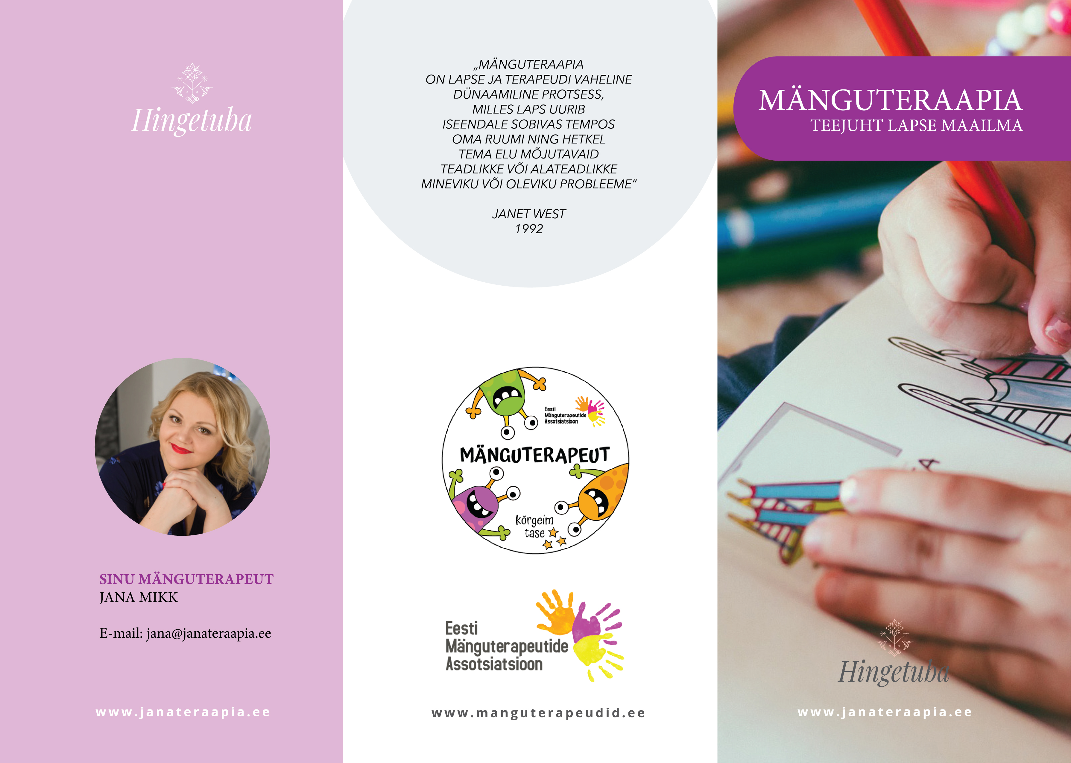 Lisainfot mänguteraapia kohta leiab Eesti Mänguterapeutide Assotsiatsiooni kodulehelt: https://manguterapeudid.ee